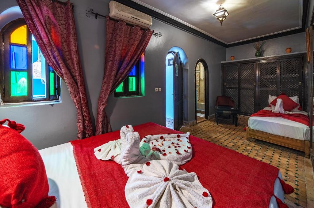 The guest rooms at the Riad Balkisse have a traditional Moroccan décor and feature air conditioning and private bathrooms. Guests can enjoy a daily breakfast in the dining room, and relax with a mint tea on the outdoor terrace. Additionnal features include a lounge with a TV with satellite channels. The Riad Balkisse is in close proximity to Marrakesh Train Station and Marrakesh Menara Airport. Special passes are available for a local swimming pool, just a 1-minute walk from the riad.
